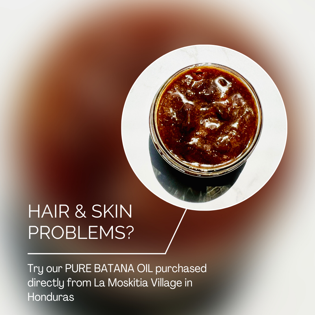 Our 100% PURE Batana Oil is sourced from La Moskitia Village in Honduras.